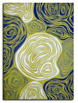 A pinecone can be recognized quickly from a distance, yet one must look closely in order to differentiate a single cone from others. They offer strong lines and textures that vary from one another. They are simultaneously rough and smooth. The shapes are simple, curvy, and natural. I chose a black background, representing night-time, where the seed is both vulnerable and protected. Strong, yet softer tonal colors of brown, tan, beige and cream indicate warmth and offer an inviting aura. “The Pinecone” is a charming, versatile piece in which I vision laying in a cozy room, such as foyer or bedroom. Although its organic woodsy feel would fit well in a den, library, lodge, or a room with a cobblestone fireplace.